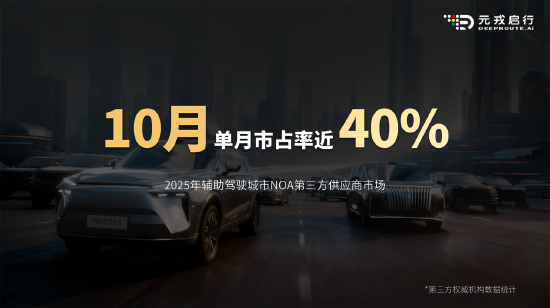 目前,元戎启行的工程化能力已趋成熟,为VLA模型的量产上车提供坚实基础。根据最新数据显示,元戎启行已交付20万辆搭载城市NOA(领航辅助驾驶)的量产车型,合作车型覆盖SUV、MPV、越野车等多个品类。根据权威机构数据显示,2025年10月,元戎启行在辅助驾驶城市 NOA 第三方供应商市场的单月市占率接近40%。