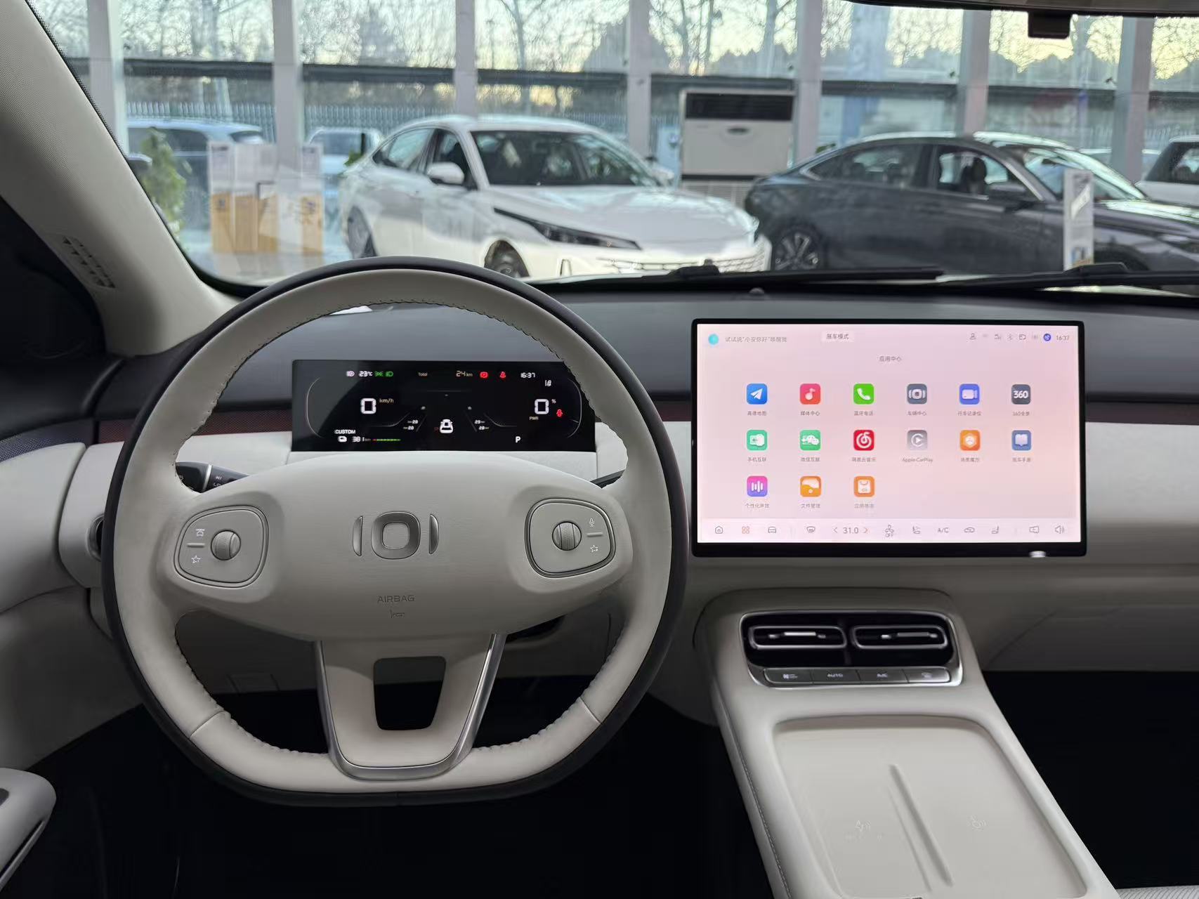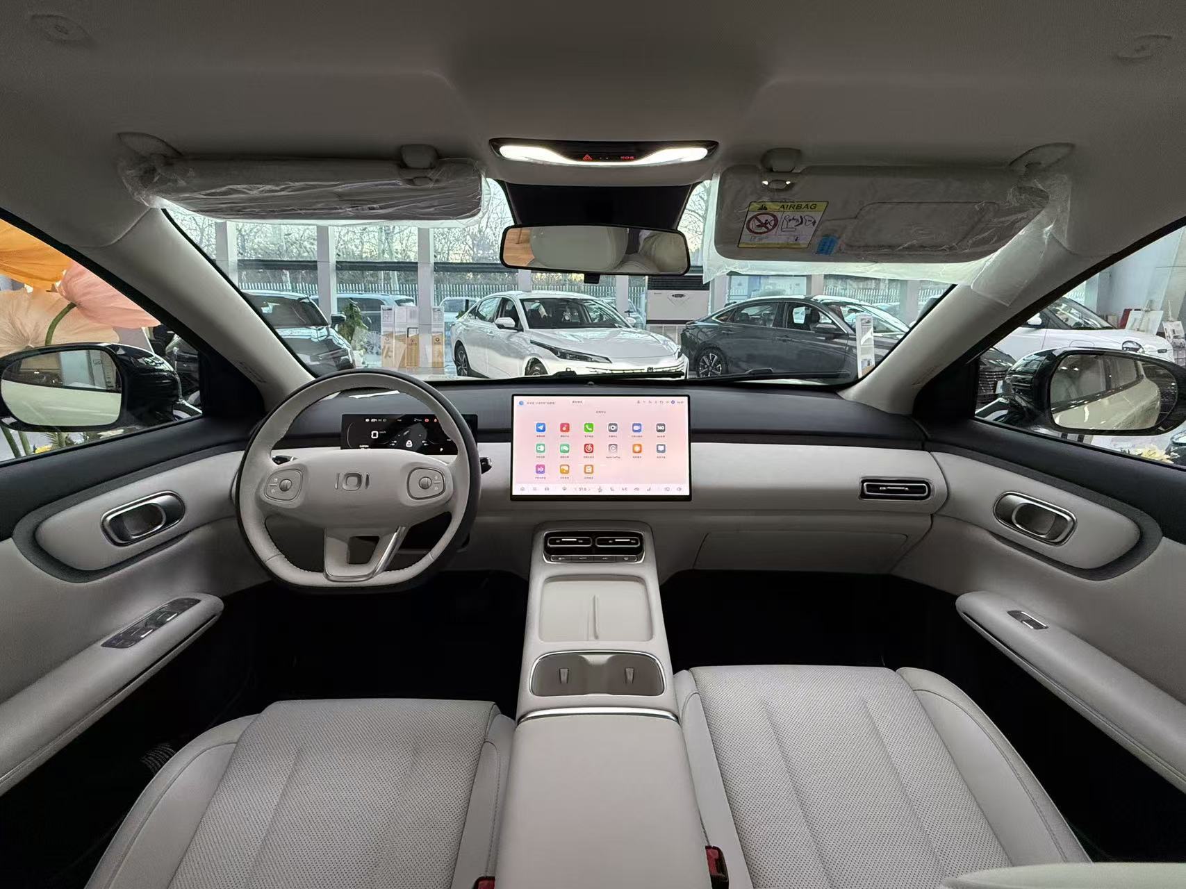 拉开车门,极简的环抱式座舱扑面而来。视觉中心是一块高达15.6英寸的2.5K超清悬浮中控屏,搭配10.17英寸窄幅全液晶仪表,构成了信息交互的主舞台。