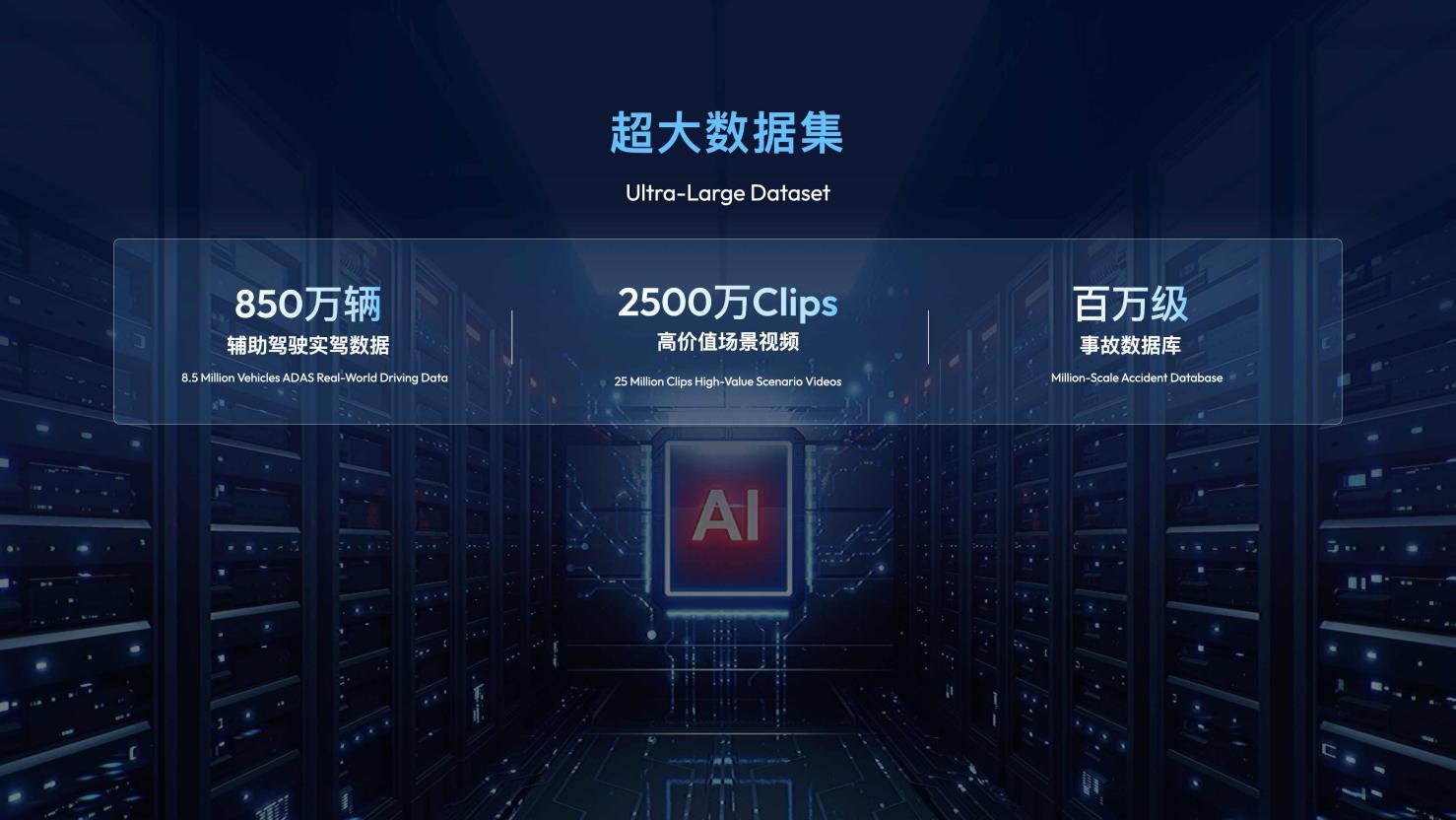 千里浩瀚G-ASD拥有的“超大数据集”。不仅拥有吉利旗下累计850万辆车的辅助驾驶和累计百亿智驾历程,行业领先的2500万clips模型数据片段,还具备行业第一的百万车辆事故安全数据。在全生命周期数据闭环系统下,“数据飞轮”将持续迭代进化,辅助驾驶系统“越开越聪明”。