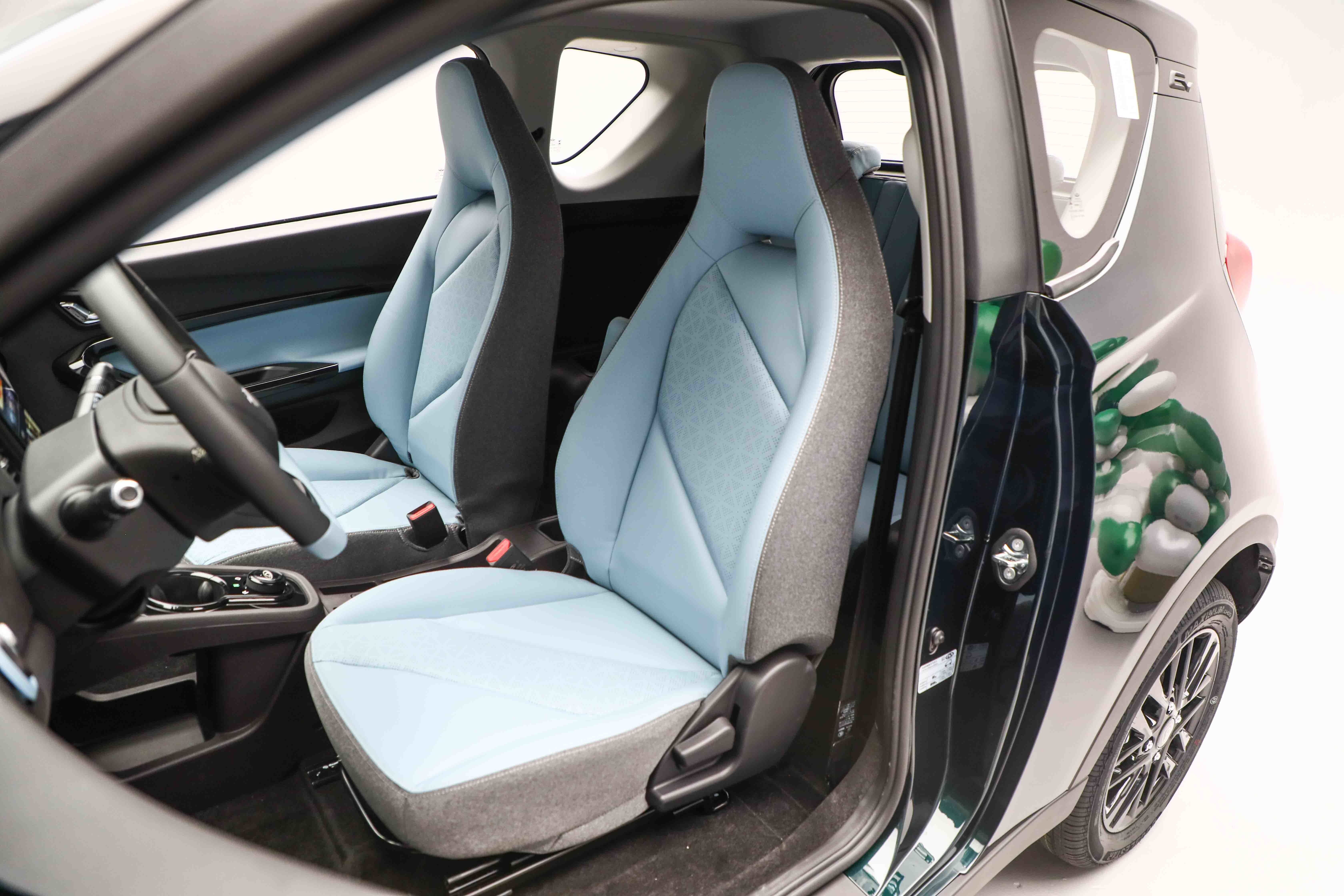 走进小蚂蚁车内,3门4座的布局搭配2150mm的超长轴距,带来超出预期的空间表现。前排座椅根据人体工学设计,高配车型的高密度打孔皮质座椅不仅透气防污,还配备三档温度可调的加热功能,冬季出行也能暖手暖心。