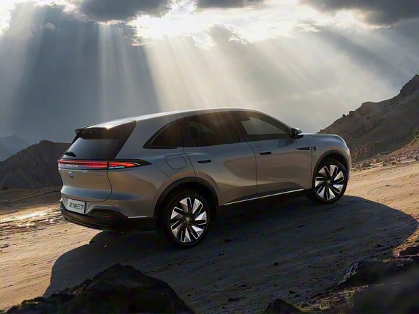 外观方面,新车延续至境SUV概念车大灯设计,依旧采用回旋镖造型灯组,前包围搭配一个向下弯的大嘴式通风口。车侧采用半隐藏式门把手设计及20英寸展翼流影轮毂。车顶还配备了激光雷达。车身尺寸方面,新车长宽高分别为4850*1910*1676mm,轴距2850mm。