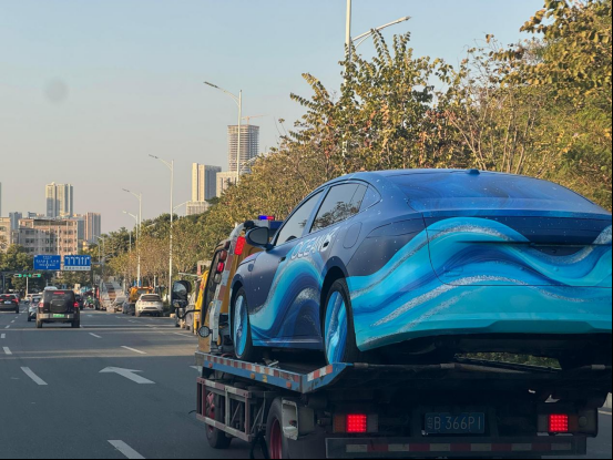 这次的曝光谍照中,海豹08披上了蓝色的海洋主题风格车衣,非常醒目,并且上面写上了Ocean 8来表明身份。首先从侧面看,这辆海豹08的腰线跟Ocean S一样流畅且优雅。