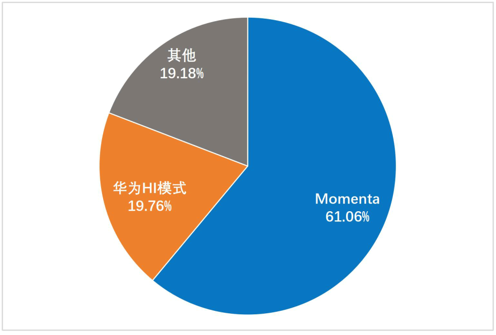 具体来看,当前第三方城市NOA供应商市场呈现“双强主导”格局,Momenta和华为的市场份额显著领先,合计占第三方供应商比例约八成。