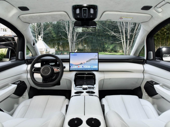 来到座舱,吉利银河V900的内饰还是比较有层次感的,中控为一块15.4英寸2.5K大屏,并配备了10.2英寸仪表屏和19.8英寸AR-HUD,内置Flyme Auto 2智能座舱,配备高通8295P芯片,音响则搭载了27扬声器Flyme Sound无界之声音响系统。
