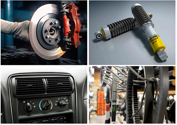 底盘系统、制动系统、新能源三电系统、发动机变速箱系统、车身外覆盖件、车身内饰件、标准件、售后维修件、空调系统、再制造零部件等。