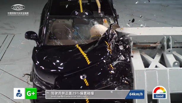 64km/h驾驶员侧25%、正面50%偏置碰撞成绩均为G+