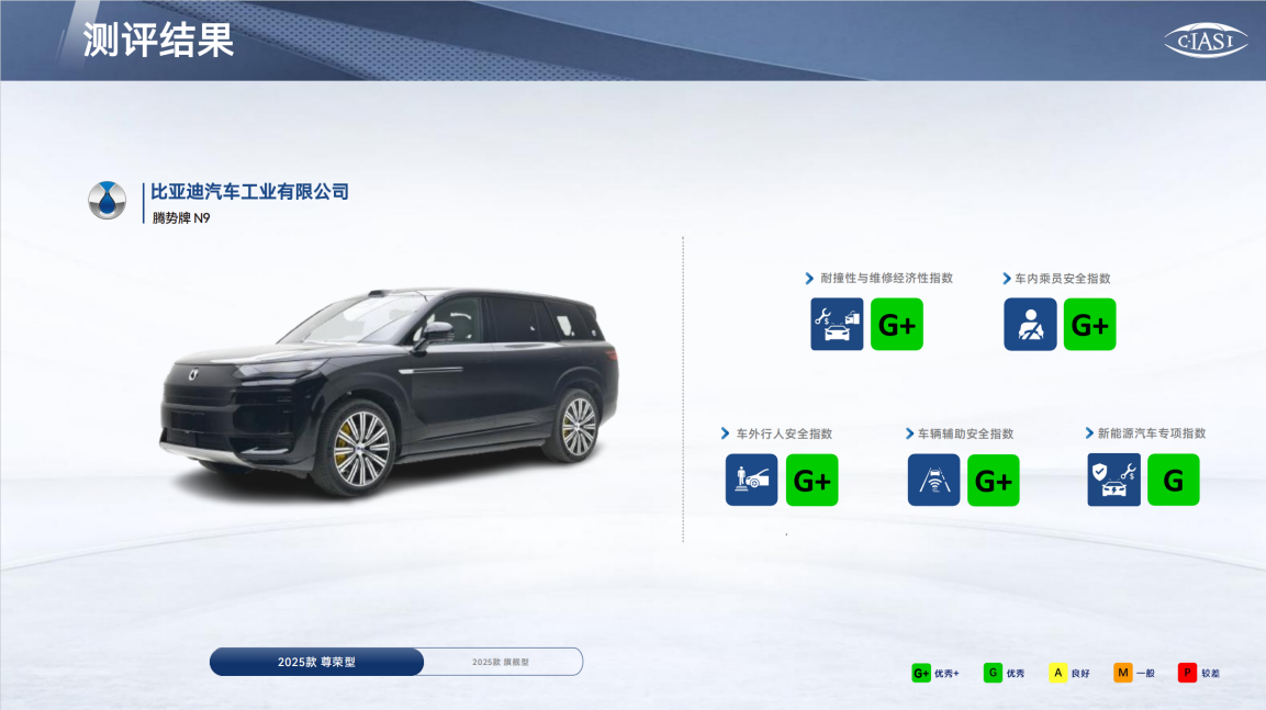 1月21日,中国保险汽车安全指数(C-IASI)正式发布2025年测评车型第二次结果,腾势N9以“大满贯”的最高评级强势通过,成为五大指数中全部获得最高评价的车型。