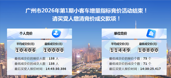 今日,广深两地2026年第1期拍牌结果正式出炉,拍牌价有所上涨。