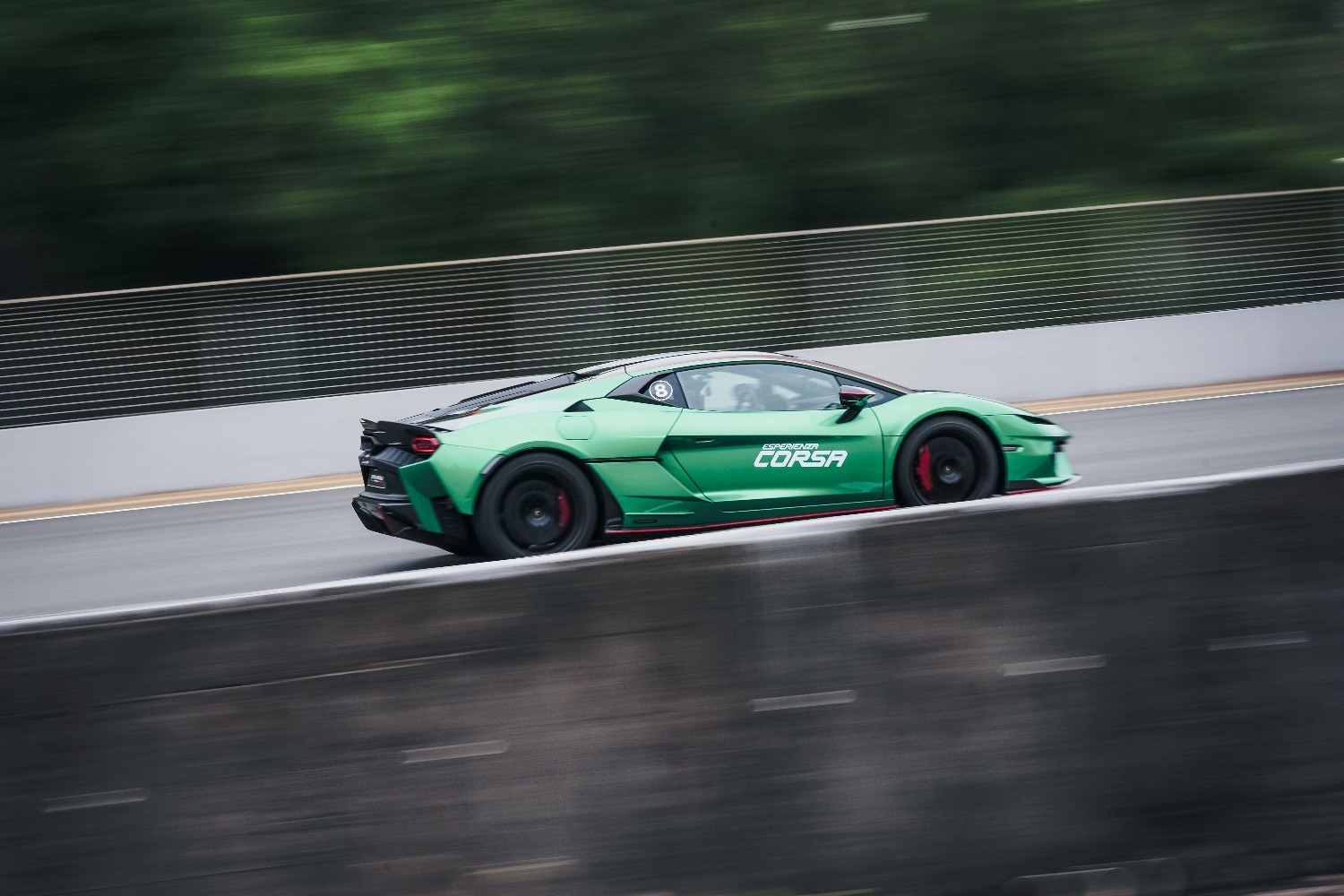 在珠海国际赛车场首次动态亮相的全新超级跑车Temerario也通过在惊艳的赛道性能证明了兰博基尼坚持电动化战略的成果:兰博基尼自研的全新V8双涡轮增压发动机是业界第一且唯一最高转速达到10000转/分钟的量产超级跑车发动机,拥有高达800马力的最大功率;三台轴向磁通电机与这台万转V8发动机配合,确保车辆在起步、低速阶段就能具备顺畅且线性的动力响应,通过内燃机与电机的精密配合,在全转速范围实现卓越的动力性能、平顺性和及时响应。