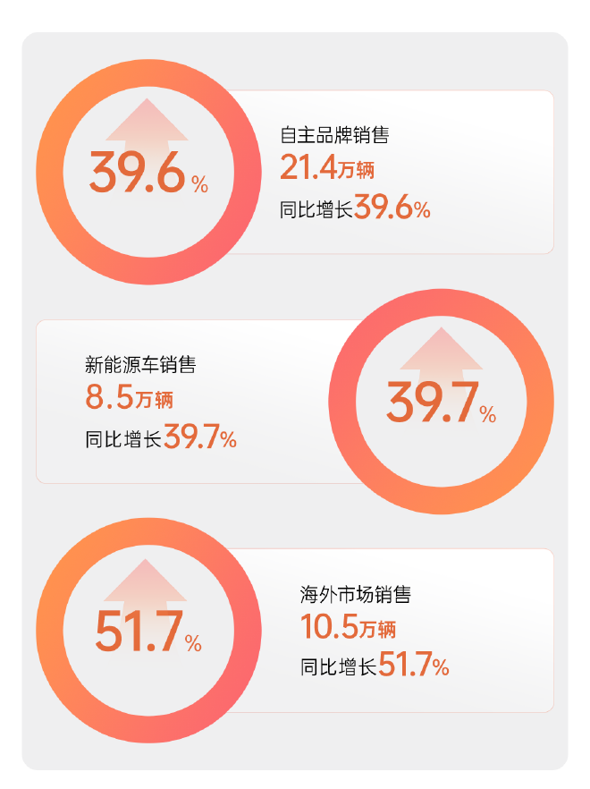 终端零售量达36.3万辆,批发与零售规模均位居国内汽车行业首位。其中,自主品牌销量占比已提升至65.3%,新能源车与海外市场销量同比增幅均接近或超过四成。