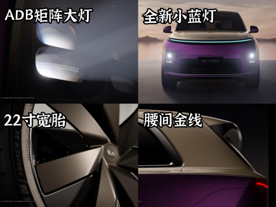 首先标志性的贯穿式星环灯明显加长,并集成了小蓝灯,大灯也终于上了ADB矩阵大灯。进气口造型向理想i系列车型看齐,车底新增镀铬金属包边,搭配22寸大宽胎后,整体气场显著增强。值得一提的是,此次L9还“听劝”地提供了定制版双色车身可选,采用三重喷漆与无阶差手工打磨工艺,腰间还有一条金线,看着更尊了。