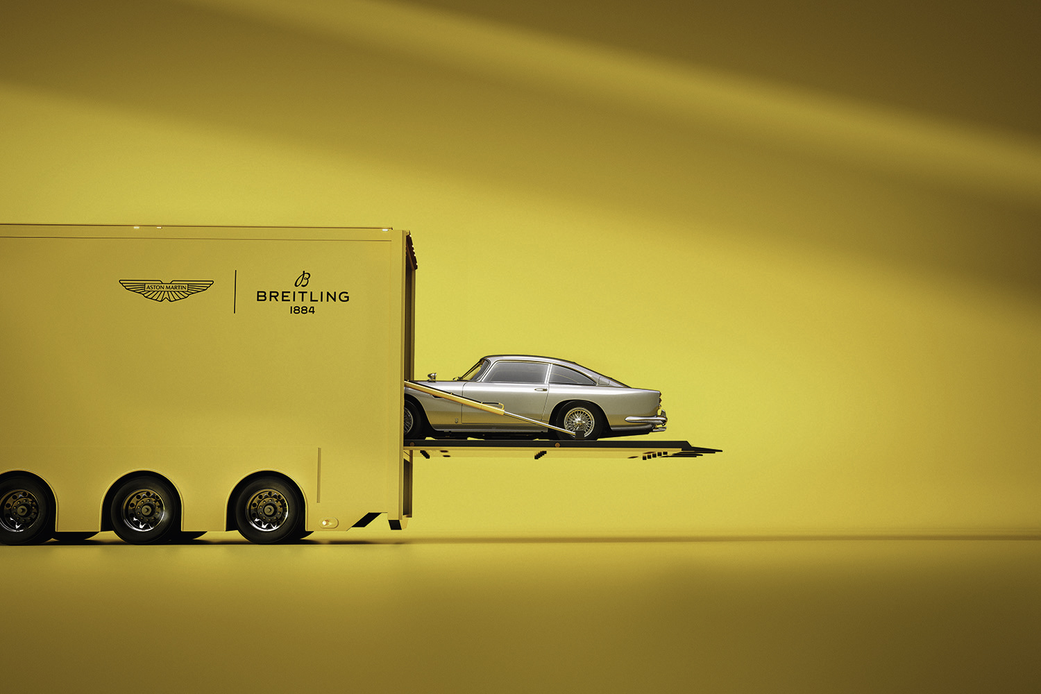 至20世纪60年代,两大品牌均已成为风格与现代工程技术的象征。百年灵创始人之孙威利百年灵(Willy Breitling)以专为新一代追崇速度与风格的先锋群体打造的Top Time计时腕表,颠覆了战后制表业的朴素风格。当它现身于电影《007之霹雳弹》(1965年)中肖恩康纳利(Sean Connery)饰演的詹姆斯邦德腕间,成为007系列电影中首枚由Q博士改装的多功能特工腕表,亦成就了那个时代的经典。而在电影《007之金手指》(1964年)中首次登场的阿斯顿马丁DB5无疑是那个时代当之无愧的标志性跑车,它在《007之霹雳弹》中再度担当邦德座驾,两大传奇同框,共同演绎融合优雅格调、速度与非凡科技的詹姆斯邦德世界。