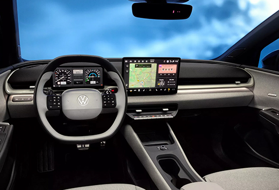 内饰设计以ID.2ALL概念车为蓝本,强调简约复古与数字化座舱相融合的理念。配备10.25英寸全液晶仪表以及13英寸中控屏,另外车内还保留了大量的物理按键,日常操作简单方便操作。