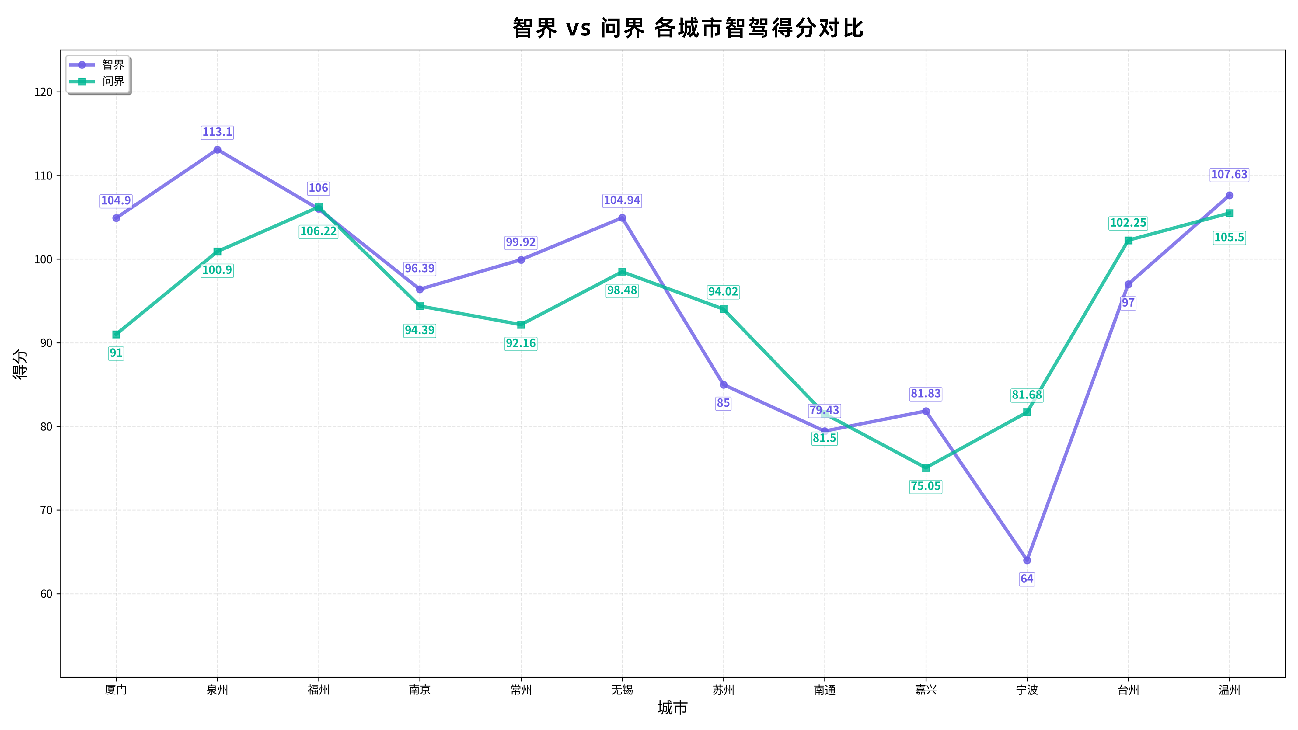 后期反弹,出现在宁波站至温州站(2026年1月10日)。在这个阶段,智界连续三站成绩大幅提升,核心原因是华为乾崑智驾ADS 4上车,新版本强化了如内部路等复杂场景的能力,最终在年度收官战温州站,智界第二次实现了对两家品牌的反超。