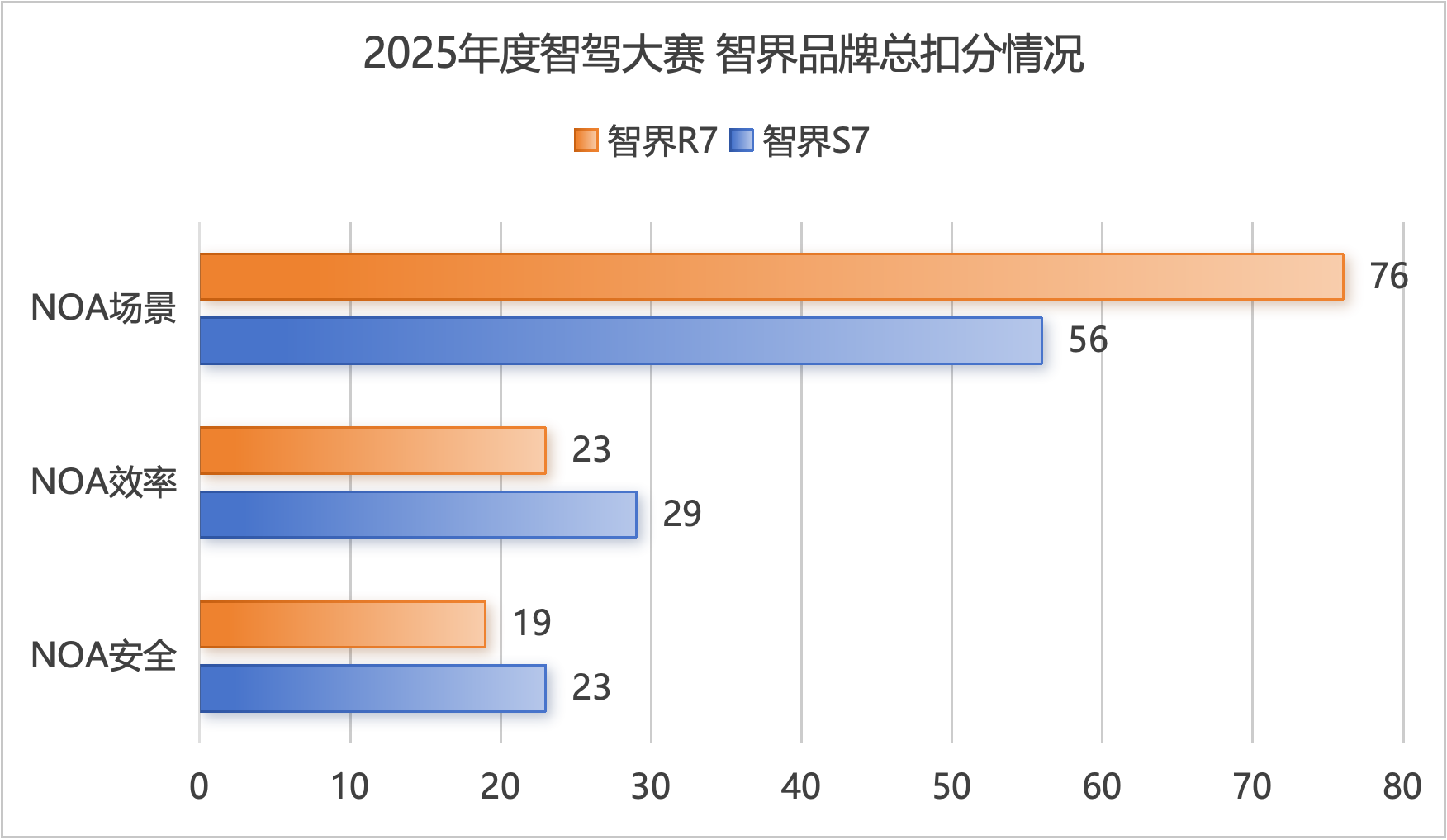 而在安全和效率两大维度,智界的扣分情况明显更少,这说明智界在软件调教的策略上,比问界相对更安全稳定。