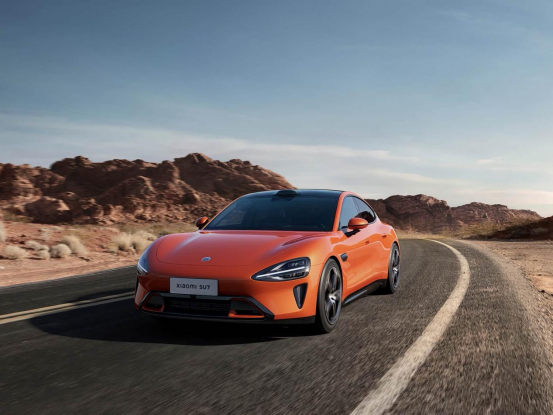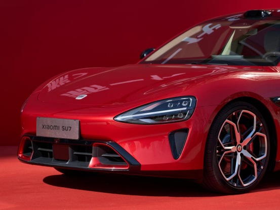 根据官方介绍,全新SU7的赤霞红车身配色以高纯度、高饱和度的正红色漆为基底,并融入了细微的金属鳞片。因此,照片中的全新小米SU7在阳光照射下,会呈现出强烈的金属光泽与立体型面,宛如朝霞般金红交织的视觉效果。个人感觉这个大红色不仅个性饱满,也与新年红红火火的氛围十分匹配,小米选在开工第一天发布估计也是为了讨个好彩头。