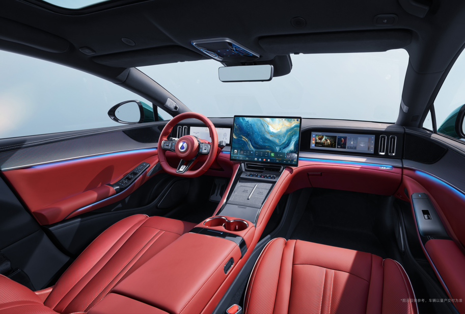 内饰设计的变化同样巨大,全新的“熔岩红”配色激情四射,搭配真碳纤维材质打造的内饰套件,视觉张力十足,非常契合GT车型的运动基调。座椅为一体式运动座椅,搭配颈部高亮黑装饰和Z9GT字样标识,进一步强化高级感和运动感。与此同时,凸显运动基因的BOOST竞速拨片,更加精巧的金属怀挡,百万级跑车同款三辐式多功能方向盘也出现在全新内饰中,营造出浓郁的GT运动氛围。加上全新设计的空调出风口,以及全车多处镀铬包边装饰优化,高级质感浑然天成。
