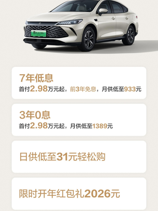 另一个不得不说的当然就是秦PLUS了,作为王朝网便宜且走量的车型,秦PLUS每次的新动态都能引发行业极大的关注,这次虽然车价没变,但它可是比亚迪王朝网率先支持7年低息方案的车型。在7年低息方案下,秦PLUS首付2.98万元起,月供低至933元,而在3年0息方案下,月供可低至1389元,这些分期方案等于变相拉低了购车门槛,对这个价位的其他车型势必能造成不小冲击。