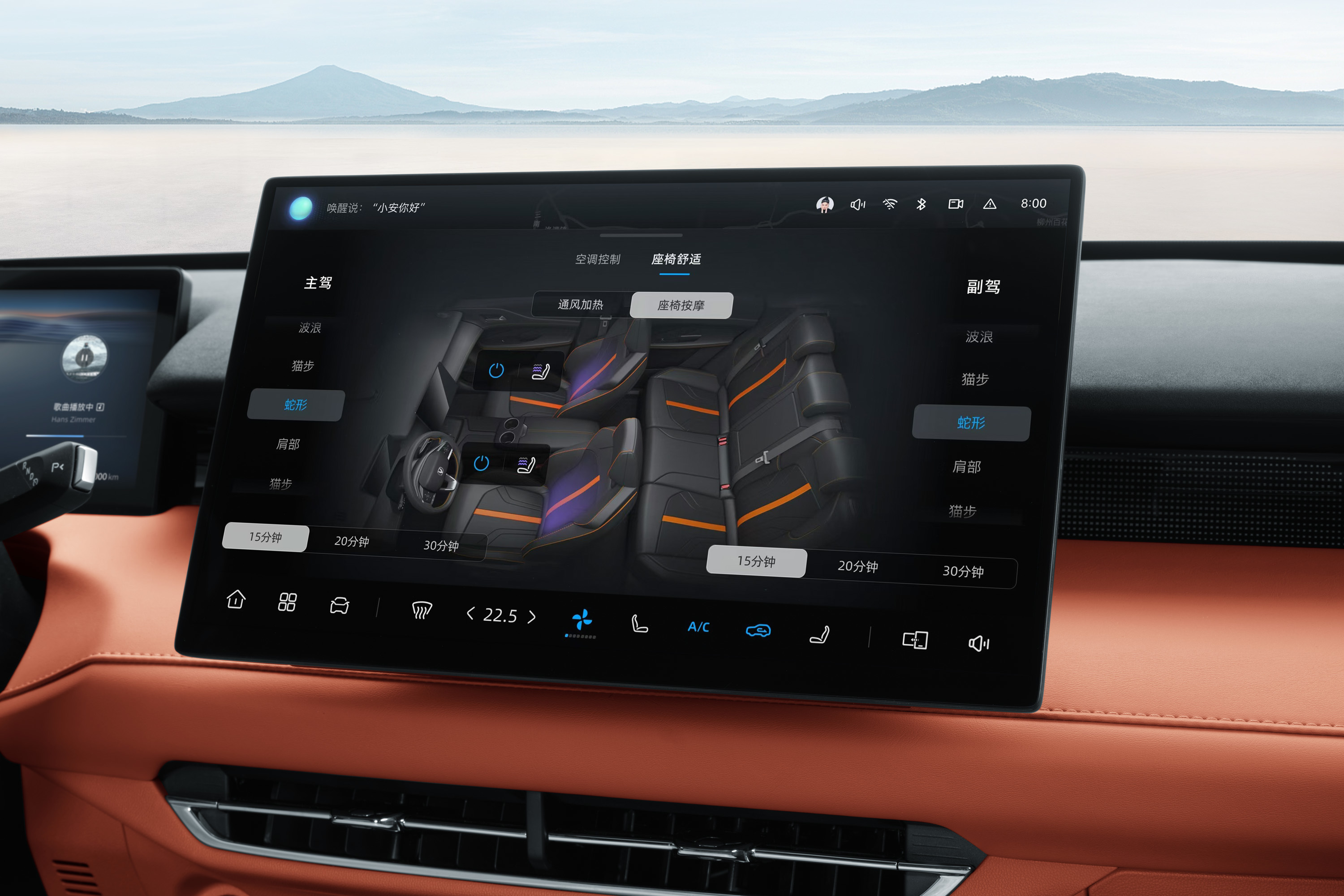 舒享配置方面,新车的前排座椅新增8点位8模式3挡力度可调的座椅按摩,配合覆盖坐垫和靠背的座椅通风加热功能,以及零压云感女王副驾的58度电动调节腿托,让新车在多种场景下都可以带来专属的舒适姿态。