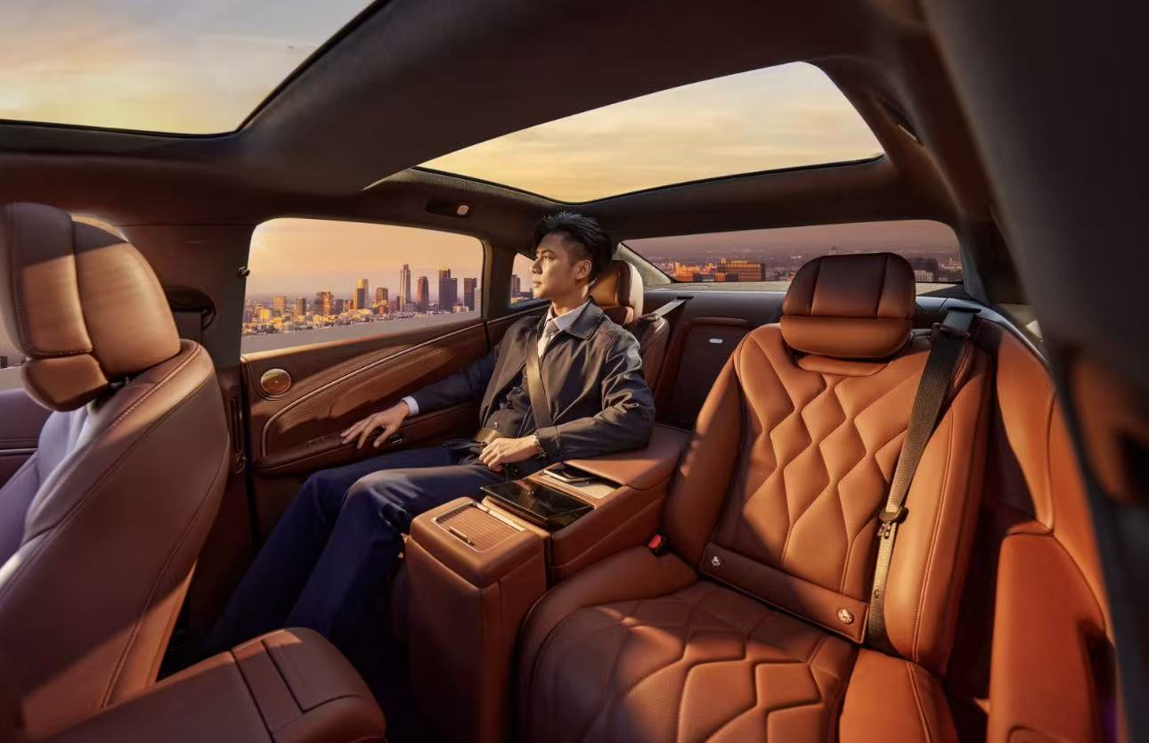 设计上,昊铂A800传承昊铂家族语言,532经典豪华尺寸、1.31倍宽高比尽显气场,全球首创三面式翻转大灯、6068毫米星环灯带极具辨识度;内饰采用30年花曲柳木饰板与超柔Nappa真皮,搭配2+1变形座椅、三温多控智能冰箱、23扬声器旗舰音响等高端配置,完美适配商务、家庭等多元用车场景。