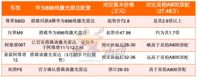 ▍核心亮点:华为896线激光雷达加持,智驾实力越级