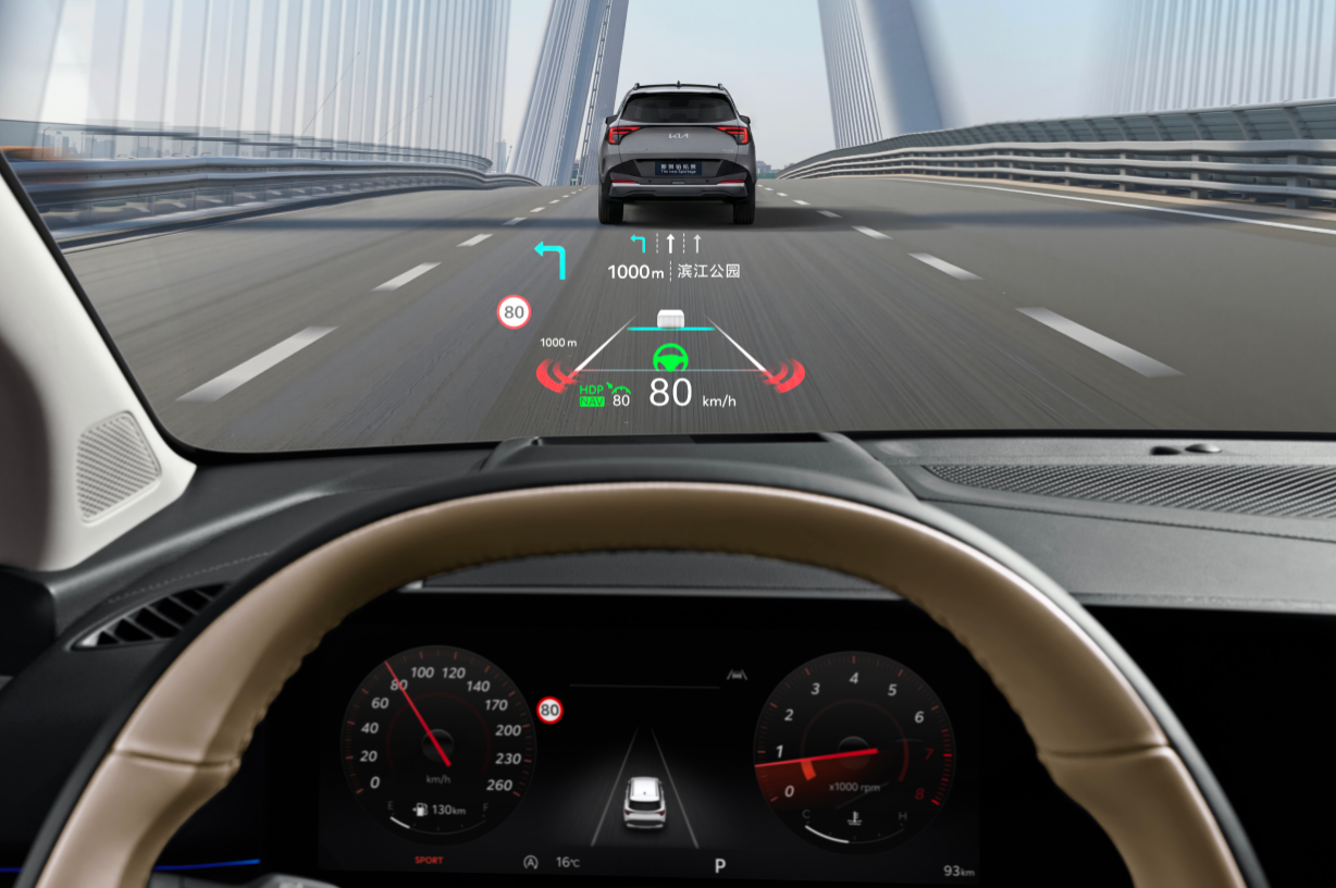 值得一提的是,起亚新狮铂拓界首次搭载11英寸HUD抬头显示系统,能有效减少驾驶视线转移,其最高亮度可达12,000尼特,即便在正午强光下依然可以清晰显示车速、道路标识和导航系统等关键驾驶信息,配合SVM全景显示与BVM侧后方影像,进一步扩大安全边界。新车还搭载起亚全新研发的智能IFS投射式大灯,照射范围更广、亮度更强,让用户夜间行车更安心。