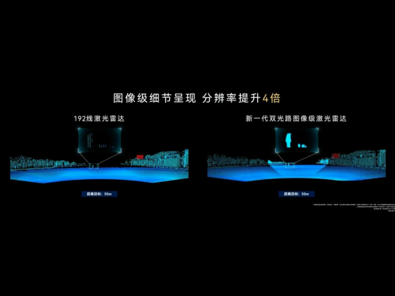 就单从线束上看,896线相较于很多友商主流应用的128线,以及部分高端车型开始应用的520线都要更加领先,更多的线束就意味着更高的精度,这颗892线激光雷达扫描成像相比之前本就厉害的192线分辨率足足提高了4倍,如果说以前是在看低清视频,那现在就等于在看4K大片!