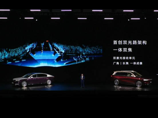 并且此次华为896线激光雷达采用了独创的双光路架构,具备广角与长焦双焦段——广角横向覆盖范围广,长焦虽覆盖范围窄但探测距离远,两个光路既可独立工作,也可同时开启。这原理与手机双摄颇为相似!就像手机从单摄像头升级为更高规格的双摄像头,不仅成像质量显著提升,还能覆盖不同焦段,近处视野开阔,远处清晰可辨,既能把握全局,又能洞察细节。