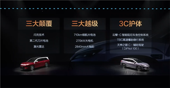 动力方面,新车全系采用单电机,最大功率分别为240千瓦和270千瓦,CLTC纯电续航里程分别为620km和710km,全系标配云辇-C智能阻尼车身控制系统。