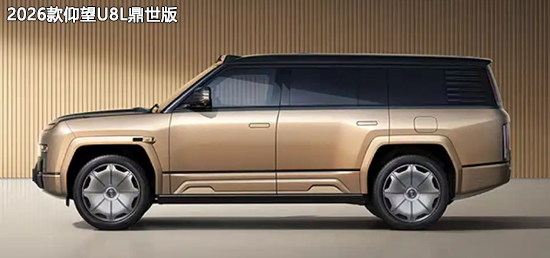 2026款仰望U8L鼎世版采用黑/金双色搭配方案,并且还引入了24K真金打造的车标,有效提升尊贵感。外观细节方面弱化越野风格,尾部取消外挂式备胎,标配上下对开式电动尾门。尺寸方面,长宽高分别为5400mm*2049mm*1921mm,轴距3250mm。