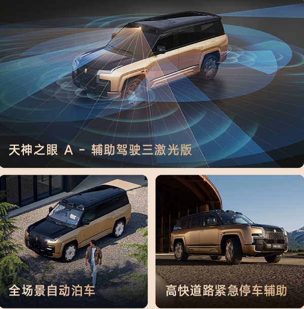 内饰方面,新车采用DiLink 300智能座舱,采用23.6英寸液晶仪表搭配12.8英寸中控屏及23.6英寸副驾娱乐屏。第二排为零重力座椅。新车将继续搭载天神之眼A辅助驾驶三激光版,支持高快领航、城市领航、自动泊车、代客泊车、易四方泊车。新车增加全新旭光橙内饰配色。