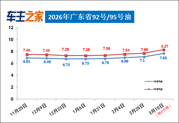 2026年广东92号/95号油价走势: