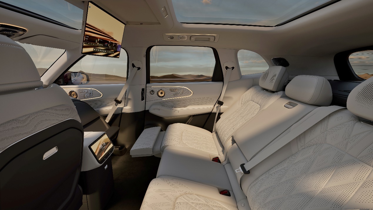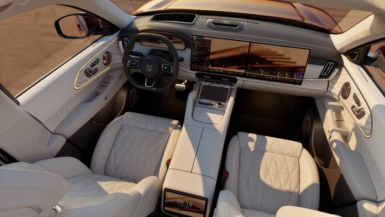 座舱设计以高性能+豪华感为核心:环抱式驭控座舱布局搭配蝴蝶桥式运动扶手,强化驾控中心属性;保留的物理按键兼顾盲操安全性与机械质感,与百万级豪华配置形成互补。二排MPV级伊姆斯躺椅、宾利同款Naim殿堂之声音响、钻石格纹NAPPA座椅等配置,系统性地服务于“精准驾控”与“全员舒适”的双重场景,重新定义了大五座旗舰的豪华标准。