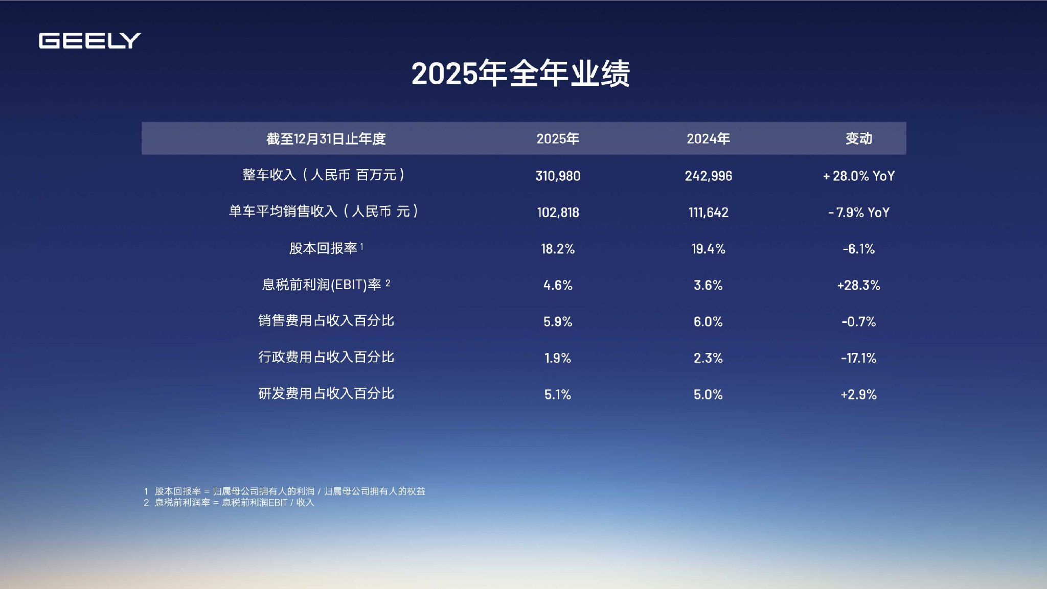 2026年3月18日,吉利汽车控股有限公司(简称“吉利汽车”)(0175.HK)公布 2025 年全年业绩。2025年吉利汽车总收入 3452 亿元,同比增长 25%,创历史新高。扣除外汇汇兑等非核心归母净利润后,实现核心归母净利润144.1亿元,同比增长36%,核心利润增速高于收入增速,实..