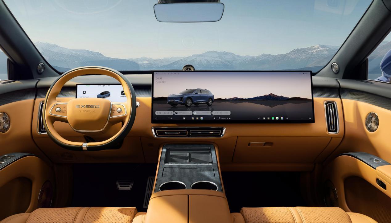 内饰方面,星途EX7采用悬浮式液晶仪表+24吋W-HUD抬头显示、30吋中控+副驾娱乐6K一体屏的布局,并且首发搭载AI灵犀座舱2.0,内置5nm制程的高通骁龙8295P芯片并且采用行业首发的业态玻璃光感交互UI,让交互响应更敏捷、视觉体验更流畅;另外,AI智能体大模型的深度赋能让新车的交互更温情、AI更聪明、功能调度也更自由。