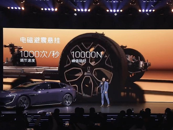 再来说电磁避震,作为行业响应速度最快、阻尼带宽最大的悬挂系统,它支持全段阻尼无级调整,调节频率高达每秒1000次。在高速过弯或紧急避让时,它能瞬间建立超3500N的阻尼力以抑制侧倾;在面对高速飞坡或大落差冲击时,又能输出超10000N的峰值阻尼强力支撑车身,有效避免触底。这一技术完美化解了舒适性与操控性长期以来的矛盾。