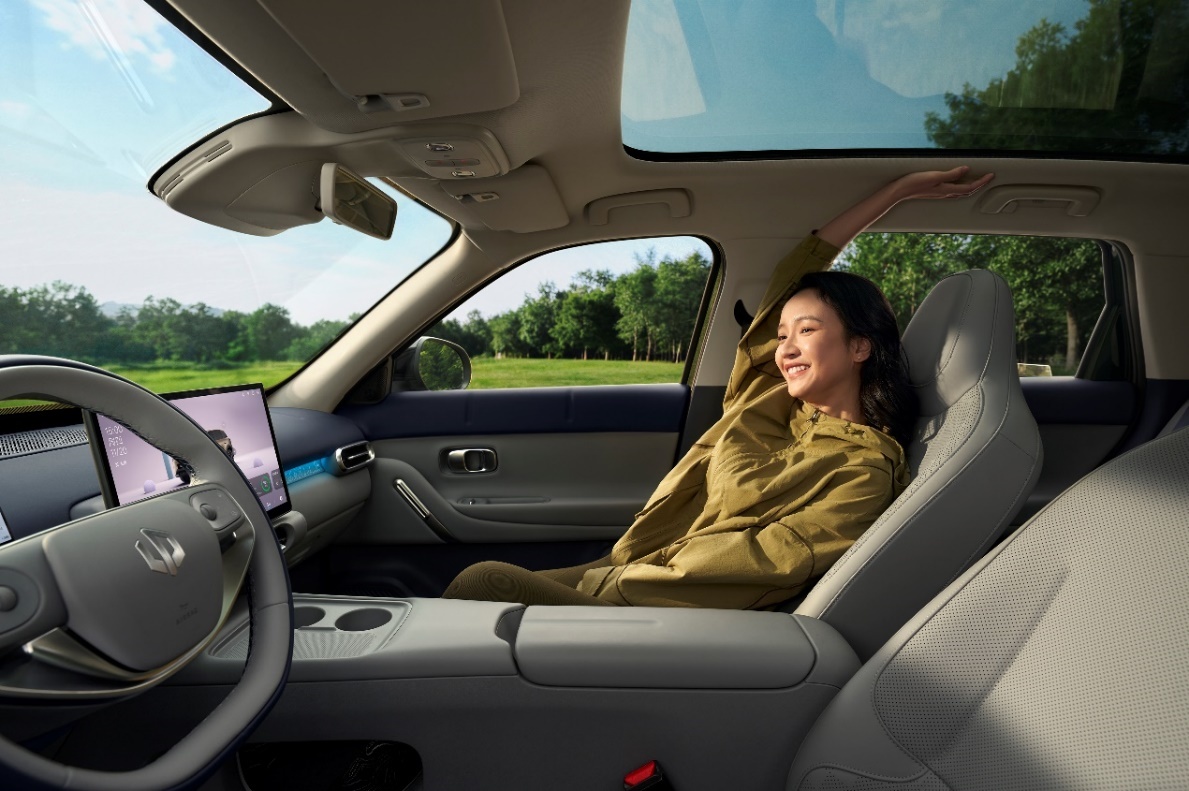 除了空间够宽裕,新车的座舱氛围也相当舒适,车厢内大面积采用软质包覆,座椅面料为欧OEKO母婴级认证,同时还配备1.55平方米超大全景玻璃天幕,拥有99.9%紫外线隔绝率,并且配备100%遮光的电动遮阳帘。