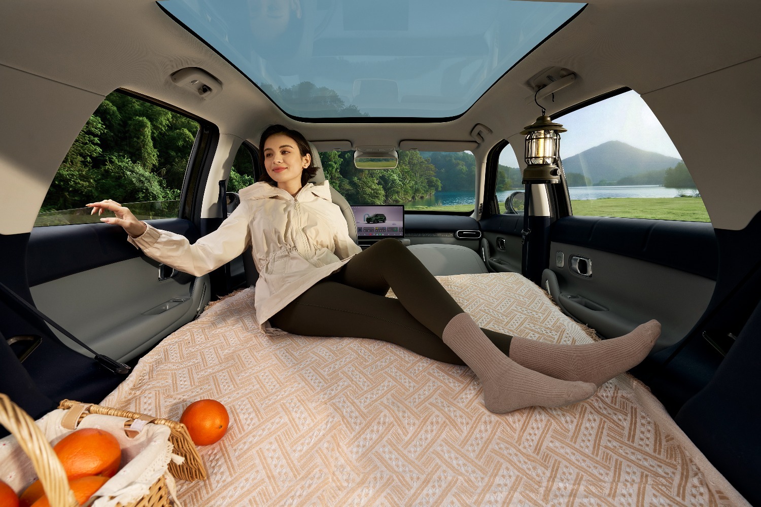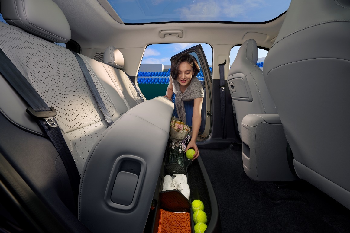 双辐方向盘和前排座椅配备加热功能,主驾靠背还有折叠小桌板,并且整合了挂钩和镂空杯架,可方便带娃家庭让儿童在后排就餐、休息、玩耍;后排座椅不仅支持靠背倍按比例放倒,也可将后排坐垫向上60翻折,实现前后排之间更规整的载物空间,诸如搬家或放置宠物提篮更加方便。前排座椅靠背也可放平,并与后排座椅组合成双人大床。