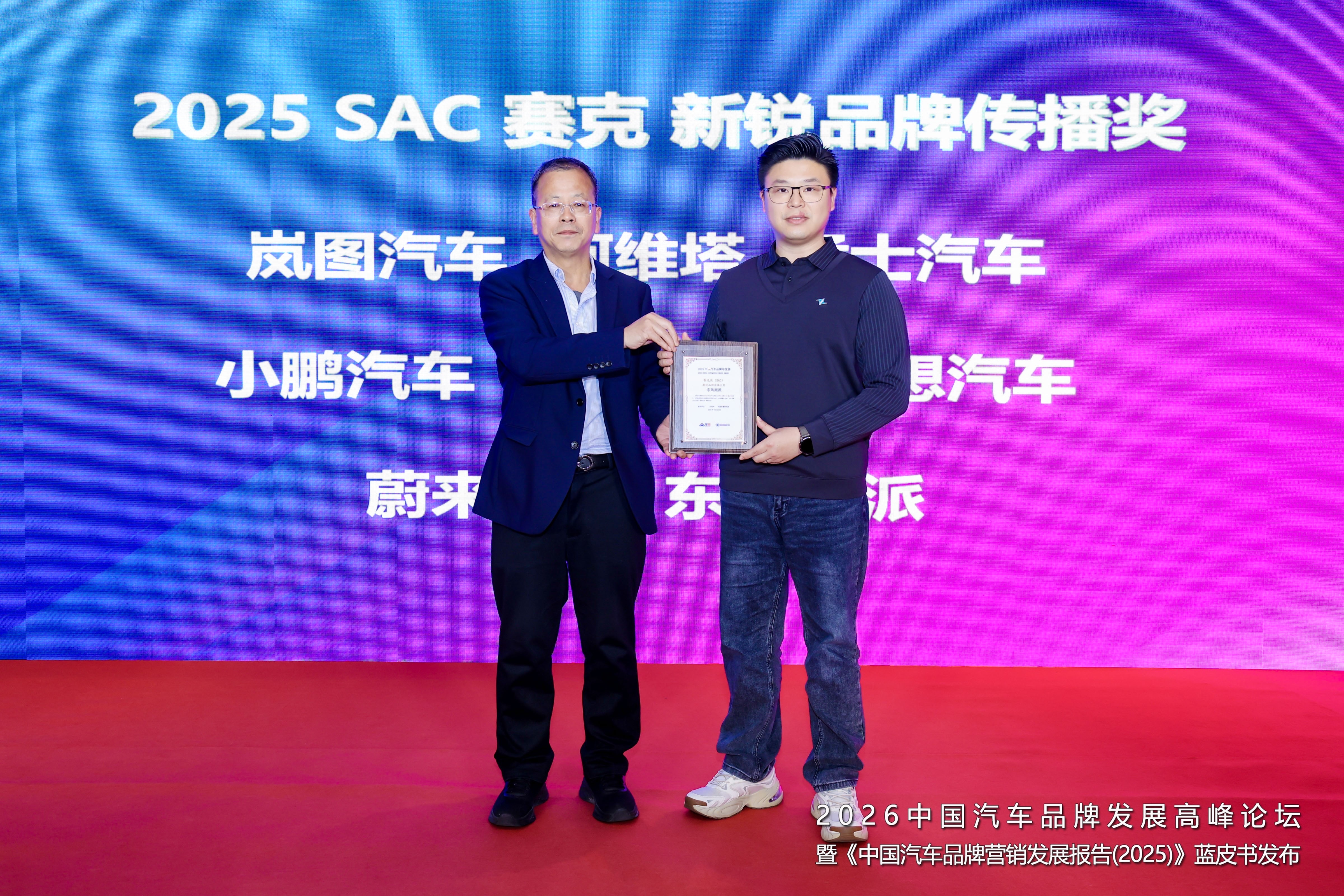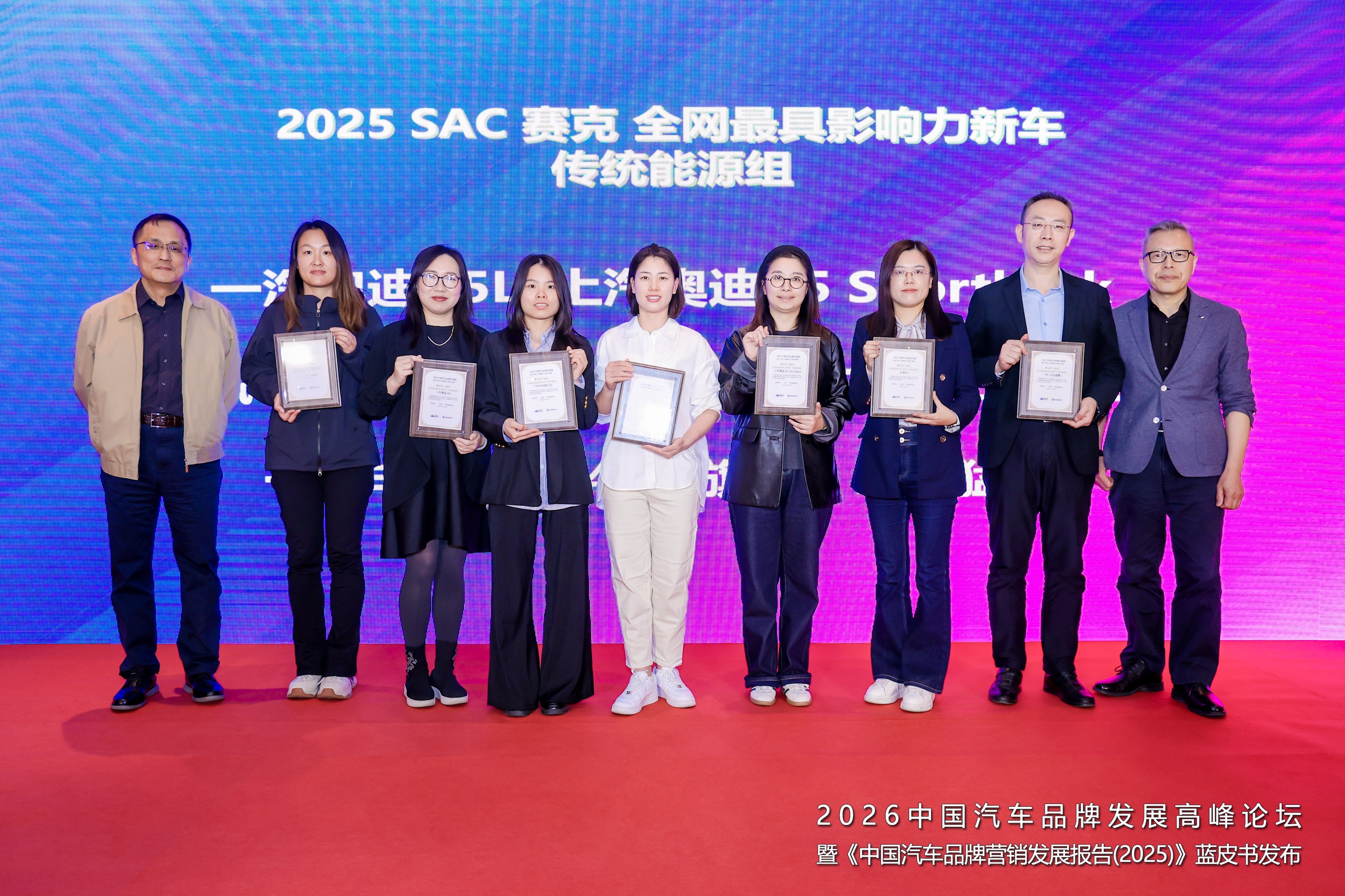 3月25日,由车问网、四度传播研究院(SAC)™共同主办的“2026年中国汽车品牌发展高峰论坛”在北京隆重举行,大会重磅发布了《中国汽车品牌营销发展报告(2025)》蓝皮书,并公布“SAC赛克奖”™评选结果,同时也为入选蓝皮书作者、优秀营销传播案例企业及2025 SAC赛克奖获奖企业代表颁奖。