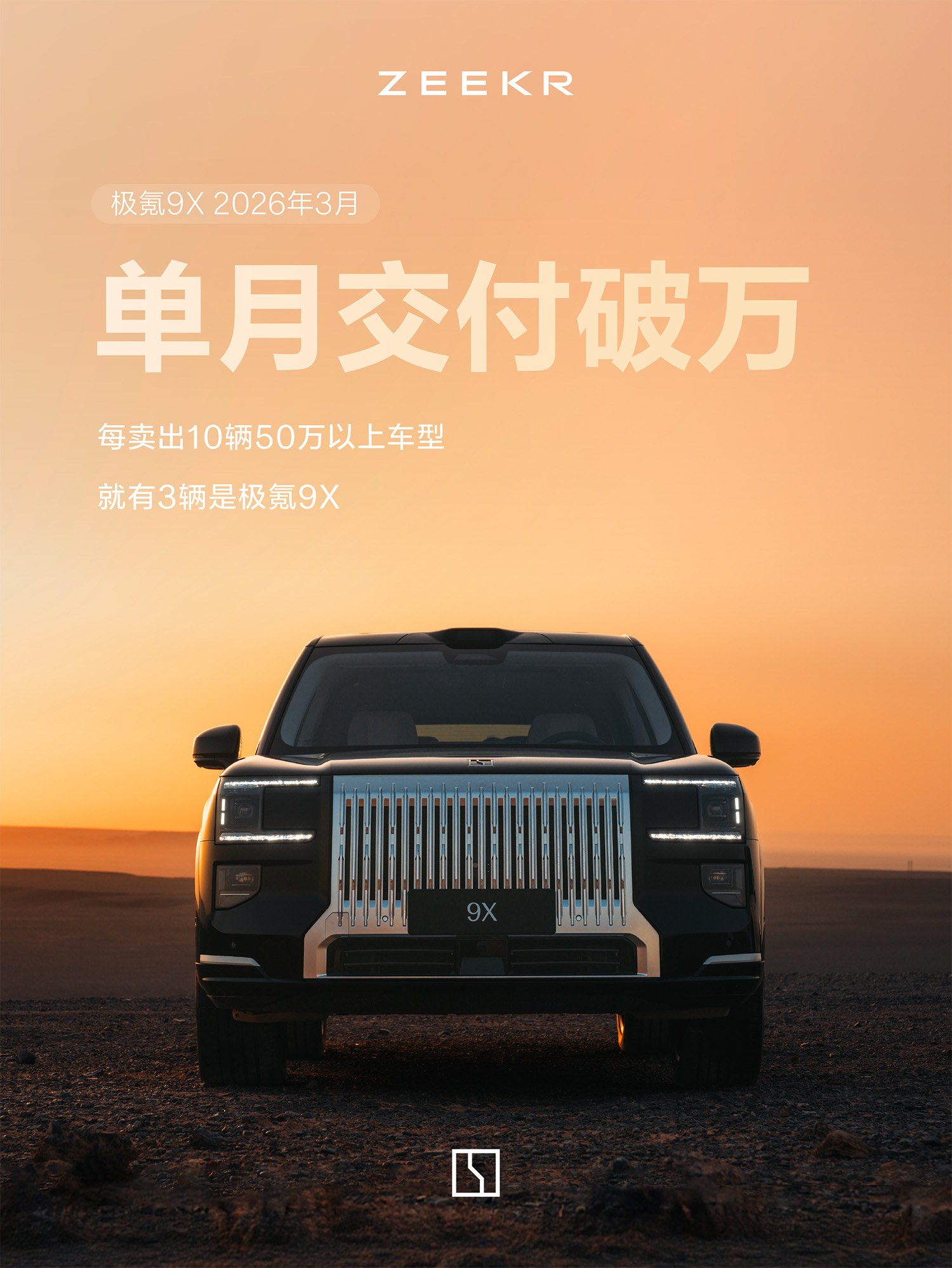 其中,极氪9X 3月交付量破万,这款基于浩瀚-S超级电混架构打造的豪华旗舰,此前已连续四月蝉联50万级大型SUV销冠,平均成交价超53万元,如今中国市场每卖出10辆50万以上车型,就有3辆是极氪9X。源于供应链核心零部件产能提升,极氪9X交付大幅加速。极氪App显示,9X的Max/Ultra版下单提车仅需1-6周,Hyper/曜黑版交付已提速至8-12周。