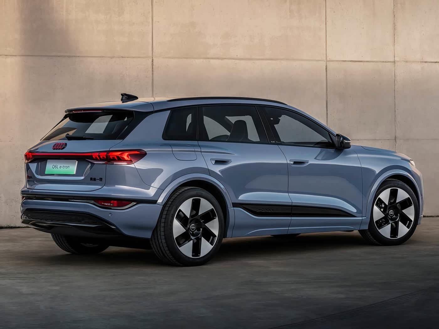 车身侧面,标准版与Sportback版本在车顶线条上形成明显区分,后者通过溜背造型进一步强化运动属性。细节上,新车配备半隐藏式门把手与多辐式轮圈设计,整体风格趋于年轻化。尺寸方面,Q6L e-tron长宽高为4884/1965/1691mm,Q6L Sportback e-tron高度略低,为1656mm,两者轴距均为2995mm,处于中大型纯电SUV主流水平。