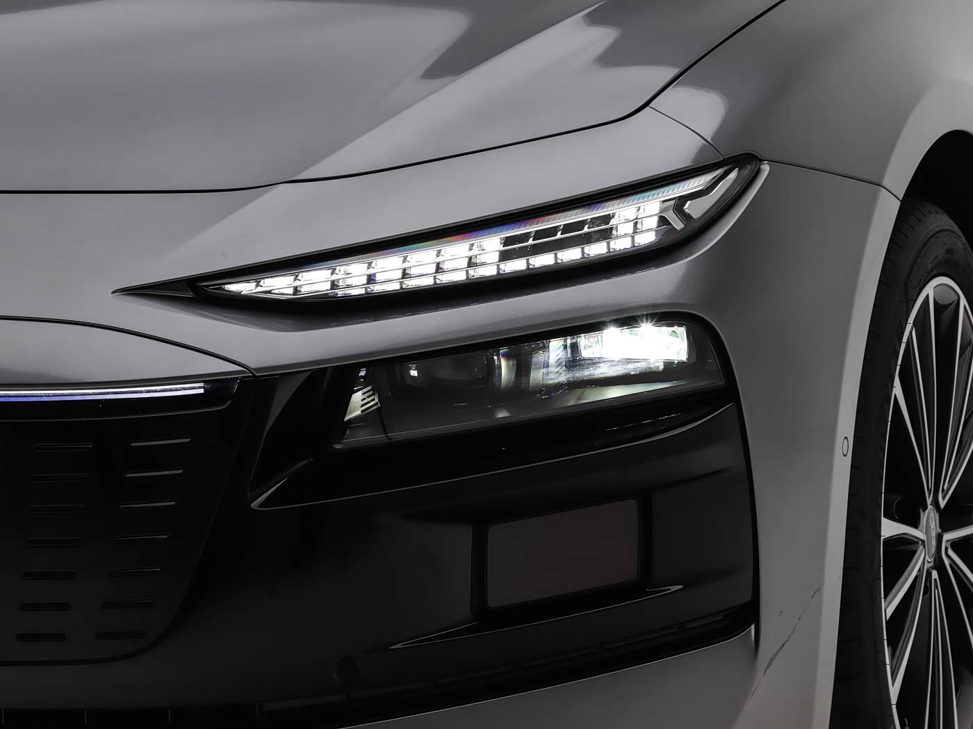 外观部分,A6L e-tron延续了奥迪最新一代设计语言,整体风格更偏向电动化与科技感表达。前脸采用分体式灯组设计,扁平化处理让视觉更低趴,数字日行灯支持8种灯光签名,强化个性表达。前格栅与灯组区域通过黑化饰板进行融合,激光雷达等感知硬件被巧妙隐藏其中,兼顾功能与整体性。同时,全车多达15处空气动力学优化,使其风阻系数降至0.22,在当前奥迪量产车型中处于较低水平。