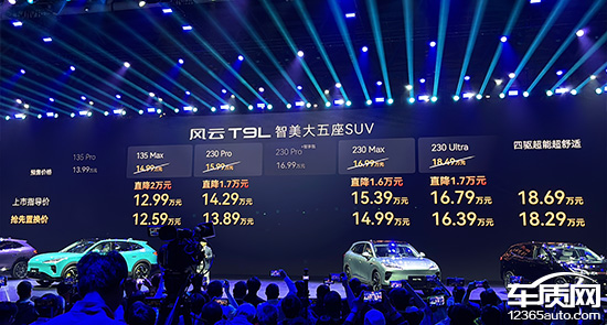 4月13日,奇瑞风云旗下大五座中型SUV――风云T9L正式上市。新车共推出5款配置,官方指导价为12.99-18.69万元,置换补贴后价格区间为12.59-18.29万元。作为全新车型,其将配备HSD全场景辅助驾驶系统与征程系列芯片,并搭载灵犀智能座舱、猎鹰系列辅助驾驶系统以及鲲鹏AI超能电混CDM6.0系统。
