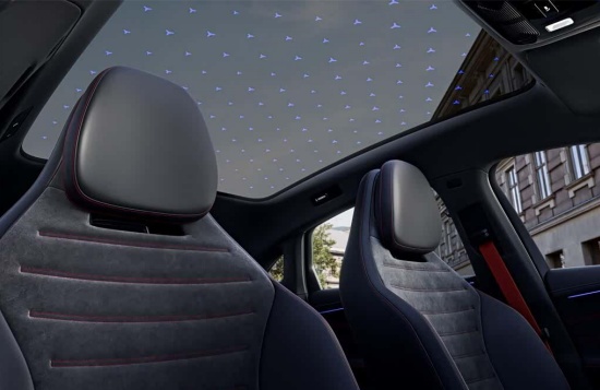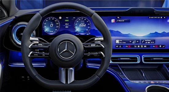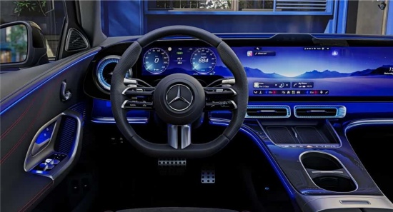 从发布的内饰官图来看,新车最大的亮点就是搭载了横贯整个中控台的39.1英寸MBUX超联屏,该屏幕拥有约1000万像素显示技术,并且拥有最新的车机系统。不过,该屏幕仅适用于高配车型,低配版本则提供传统三联屏布局的“超级屏”,两者均支持10种氛围灯模式切换,可营造出沉浸式座舱体验。