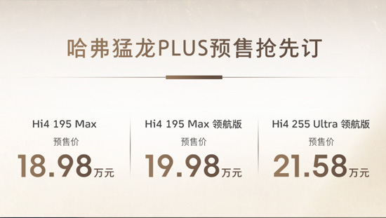 4月18日,哈弗猛龙PLUS正式开启预售,预售价18.98-21.58万元。新车定位新能源全场景方盒子SUV,基于Hi4智能电混四驱系统打造,主打兼顾城市通勤与轻越野出行的用车需求。