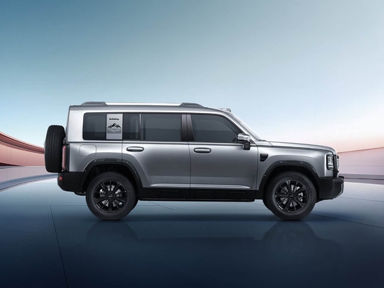 车身侧面线条平直有力,配合19英寸棱刃轮毂,进一步强化硬派气息。车身尺寸方面,新车长宽高分别为4912mm*1950mm*1905mm,轴距为2850mm。