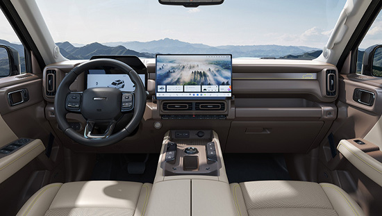 内饰方面,哈弗猛龙PLUS采用环抱式座舱布局,配备15.6英寸中控屏以及W-HUD抬头显示系统,科技氛围较为突出。Coffee OS 3智能座舱支持语音交互、手车互联以及多场景模式切换等功能。配置层面,新车提供车载冰箱、12扬声器音响系统、主驾头枕扬声器、副驾50W无线充电、小桌板以及露营灯等功能,兼顾家庭出行与户外使用需求。此外,前后排座椅均支持加热、通风及按摩功能,进一步提升乘坐舒适性。