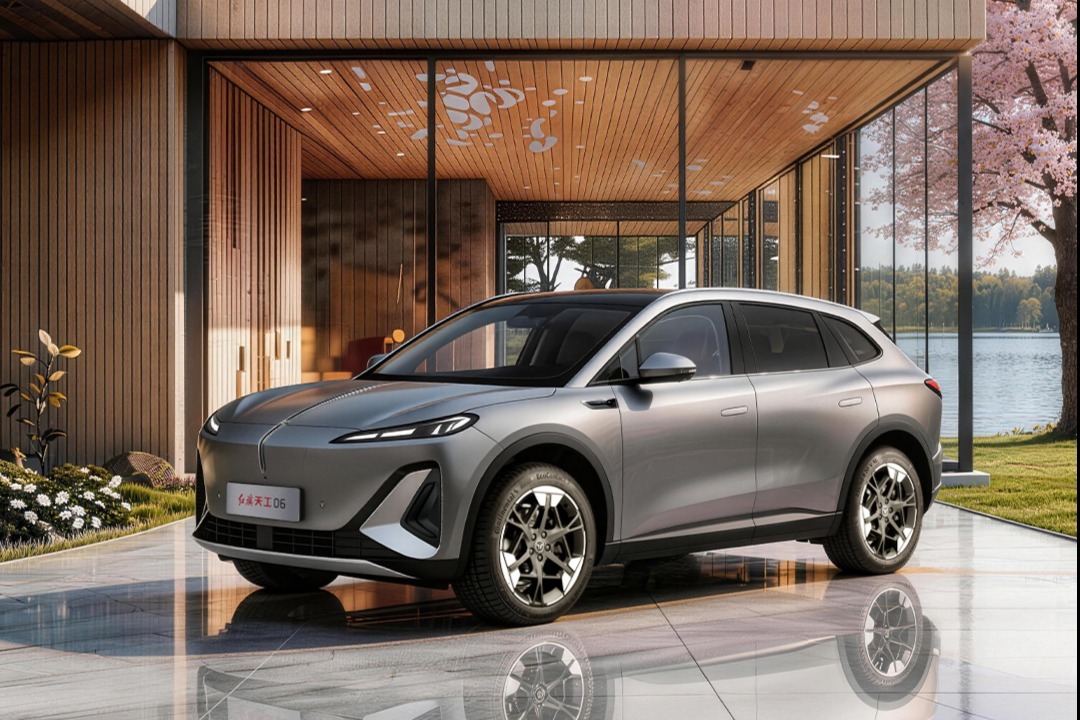天工06定位中型SUV,车身尺寸为长4750mm/宽1900mm/高1640mm,轴距2900mm。新车同样延续现款设计,提供7款国风配色,纯电续航里程为610km。新车还配备舒躺女王副驾座椅、14扬声器丹拿音响、母婴级健康座舱,宽裕的乘坐和载物空间更适合家庭出行。